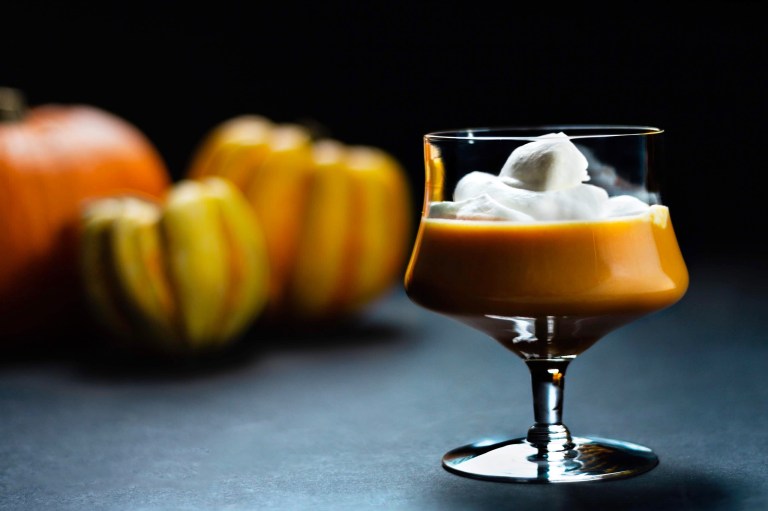 Combine heavy cream with pumpkin puree (make sure to do this first and incorporate cream well into pumpkin to avoid cream curdling later on). Stir in maple syrup and bourbon. Add bourbon slowly to ensure heavy cream does not curdle. Pour into chilled glass and top with whipped cream and sprinkle of pumpkin pie spice if desired.
