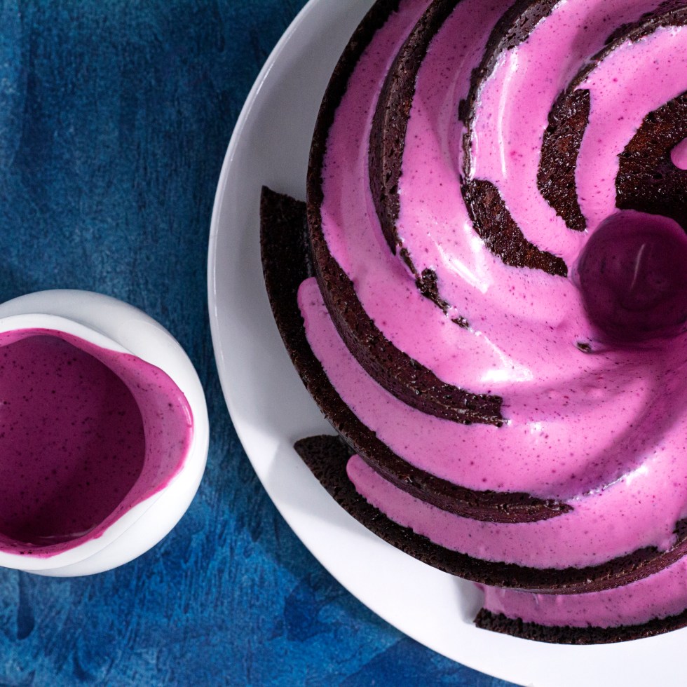 Chocolate Bundt Cake with Hibiscus Cream Cheese Frosting