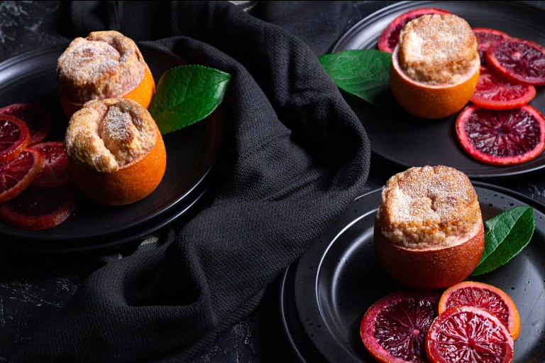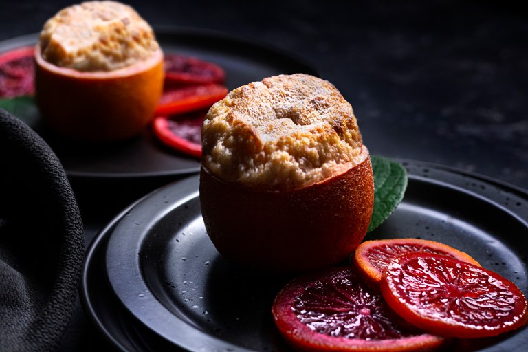 I have been fascinated with souffles for a long time but have been really looking forward to trying this recipe from Food and Wine for a while now. I really should’ve invested in a grapefruit spoon as it would have made cleaning out the blood orange a lot easier than it was. Also, finding blood oranges was SO HARD in Los Angeles. I had to stalk my local Trader Joe’s and have them put some aside for me upon delivery just so I could make this. The recipe for these little citrus beauties is here: Blood Orange Souffle