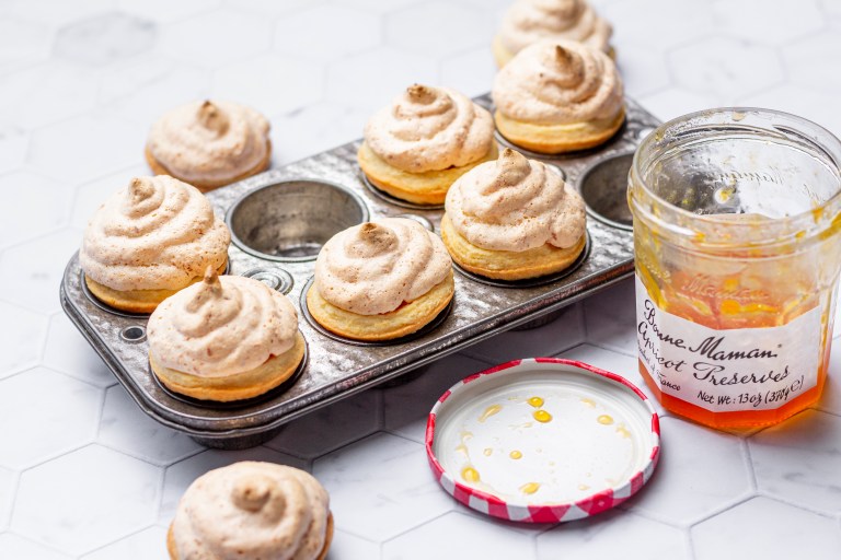 For the filling reduce the over the 180C or 360F. Fill the tarts with 1-2 tablespoons of apricot jam. In a stand mixer fitted with the whisk attachment or in a bowl using a hand mixer, beat the egg white to stiff peaks. Slowly add the sugar in batches, beating well after each addition. Beat in the vanilla extract. Using a spatula gently fold in the desiccated coconut, taking care not to overmix.